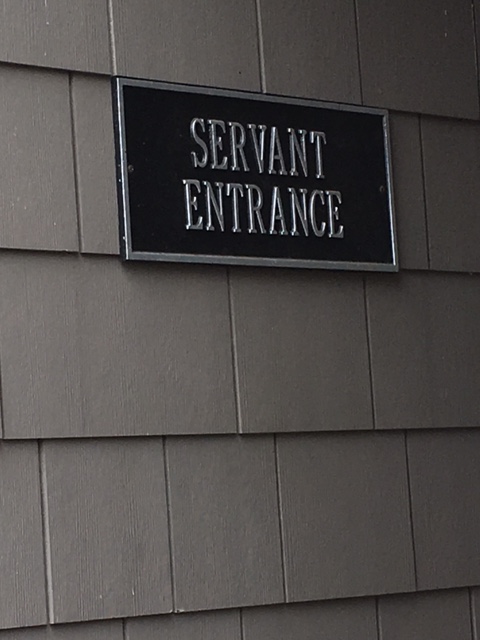 - Servant’s Entrance (possessive) -not recommended by the Bourgeoisie after the French Revolution as it gave the hired help too esteemed a belief in themselves being essential to good order.