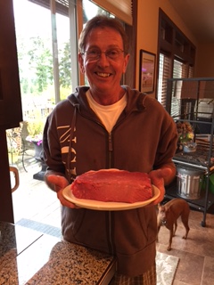 I’m glad a photo of you was included for size reference. That is a slab of Beef. It looks likes a petite cut on the grill.
