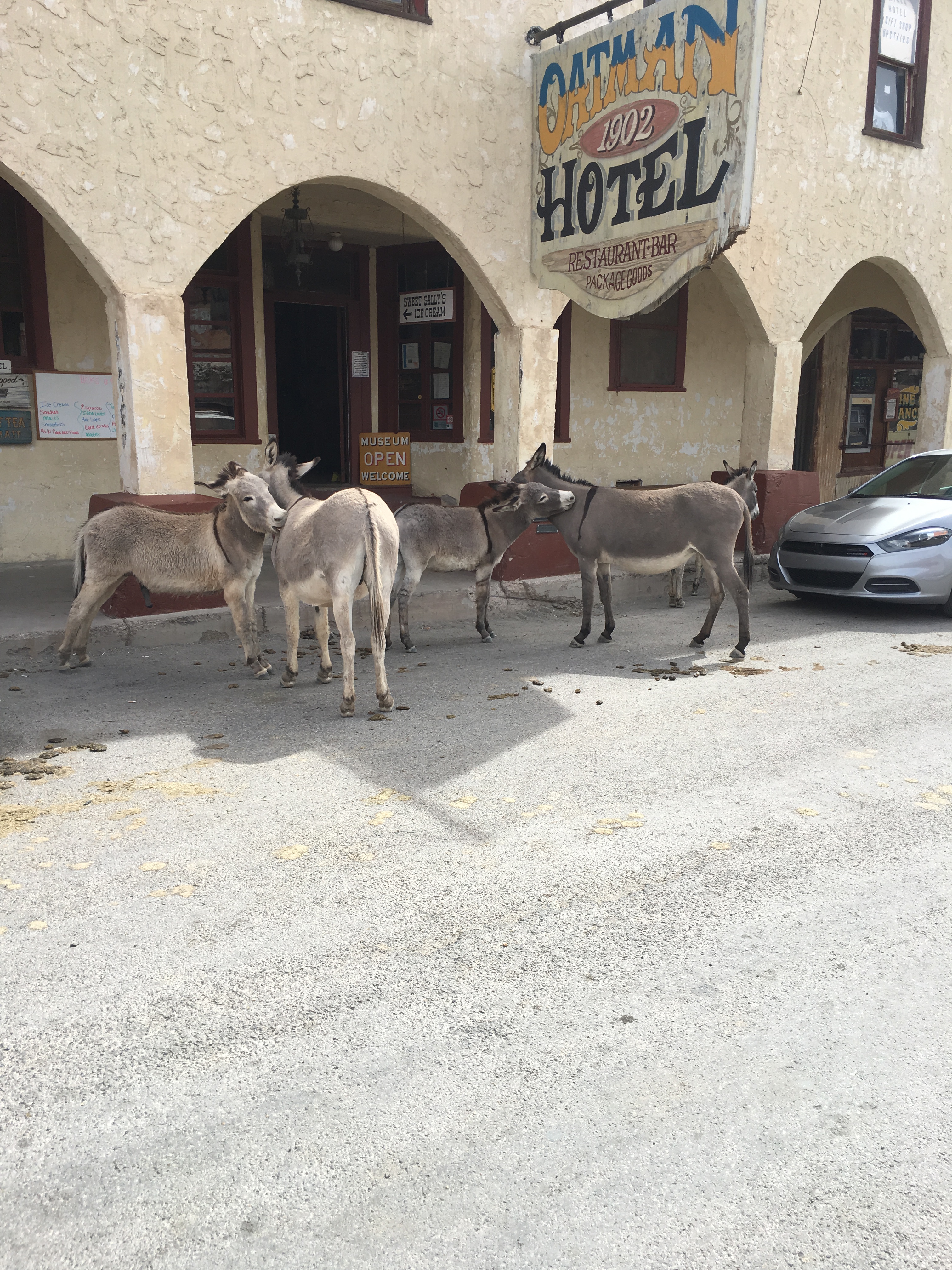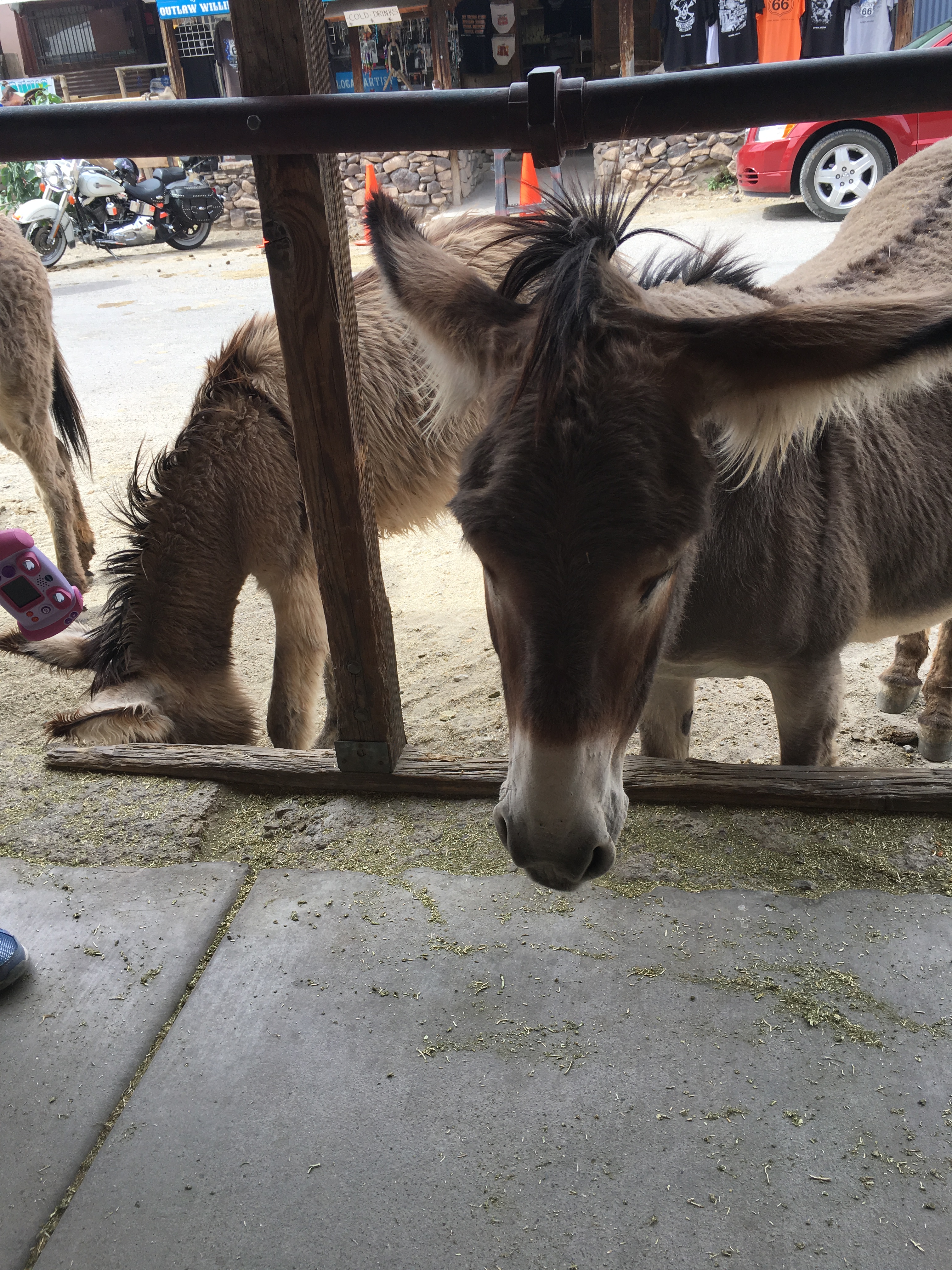 Another gotta stop if you love animals. These are the wild burros that live in the upper desert and come down for breakfast daily in high season when the tourists are present. They’re darling and also seem to know the boundaries of good taste. They’re about 30 miles east of Bullhead City/Laughlin. Try the Oatman Cafe. They have real fresh-squeezed Orange Juice at no extra charge versus regular store-bought OJ for breakfast. Killer chicken fried steaks and hash browns from hell. Get there early.