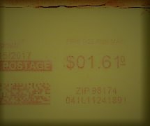 The USPS doesn’t go along with mistruths and the mailing zip code is no other than 98174- or Seattle. The mailing date is also May 15th… How could it be otherwise in less than a week? Nevertheless, that’s pretty damn quick.