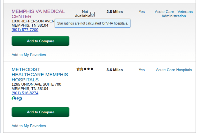 Medicare lists but doesn’t give stars to VHA hospitals.