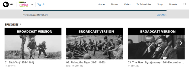 The program is not a strictly chronological accounting of the history leading up to American involvement but that’s okay. The narrative flows.  There are viewer warnings due to graphic violence, language, and content.