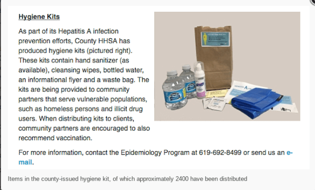 Over the last few months, Frank, an avid reader about all things “US Vet,” has emailed several articles to me about the hepatitis A (HAV) outbreak in San Diego (SD) to share with Asknod’s folk. The ongoing story has many aspects that deserve our attention.