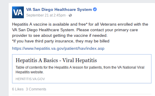 The VA in SD really needs to get out on the streets because studies have shown that homeless veterans migrate. Those enrolled are tracked when they use the VA so they have solid facts they can use to help find carriers from spreading viruses far and wide. About 1/3 of those in SD sickened with HAV are NOT homeless and they might have used a public computer in a library, touched contaminated door handles, or been exposed many other points of possible exposure. Plus SD is a big tourist and convention hub. About 48K people work at the Naval base. I’m sure the CDC is tracking this because it might be hard to stop with everyone traveling in and out of this popular destination.