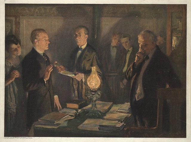 Image:Library of Congress: Text: VT gov. “While vacationing at his old family home in Plymouth Notch, Vice President Calvin Coolidge received an urgent message from Washington, D.C.: the President, Warren G. Harding, had died. At 2:47 a.m., by the light of a kerosene lamp, Coolidge took the oath of office from his father, the local notary public. Years later, Coolidge wrote, “It seemed a simple and natural thing to do at the time, but I can now realize something of the dramatic force of the event.”