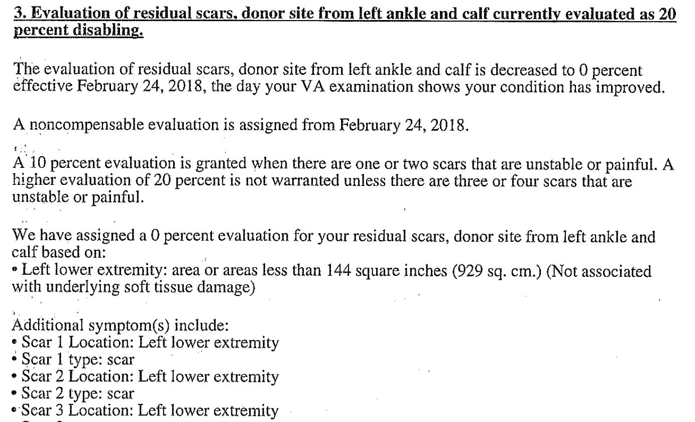 So here we go. The VA rater blithely takes 26-yr. old antique painful scar rating(s) and conflates all the scars into square footage. Uh-oh. You need six square inches to get to 10%. Way missed it by thaaaaaat much.