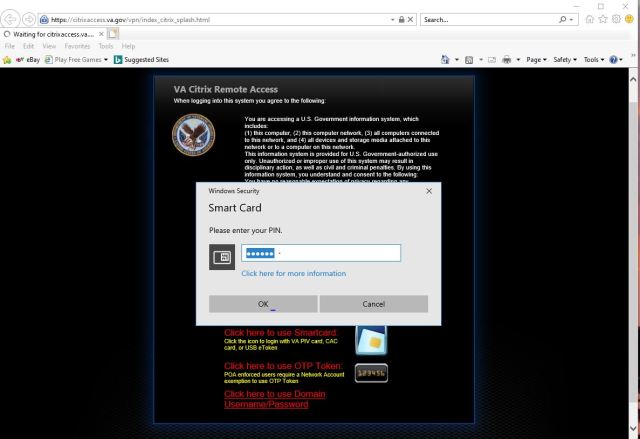 Authenticate and just like that, you’re in. Every once in a while I get these ActivClient PIN code requests. They didn’t work on the old Windows 7 system but they do now.