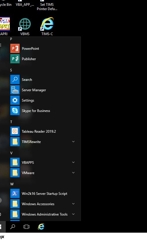 Once I reach here, I choose where I’m going -CASEFLOW, Outlook emails, VACOLS or VBMS. I click on the little black and white Windows logo in the bottom left. It opens up your choices like doing it on you own computer (unless you’re one of those Apple idiots). Click on Outlook if that’s where you’re heading. Or look at all the desktop Icons and doubleclick the VBMS Globe shaped dohickey (second row down in the middle). This is the easiest path to VBMS.
