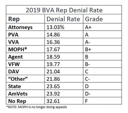 Here’s a real eyeopener. Got this from a reader. Interesting. Statistically, I would expect attorneys would have the highest rate of success. As presented, I presume a 13.03% denial reflects the obverse-a 86.97% rate of success in either winning or getting a remand to repair it.