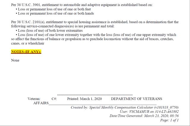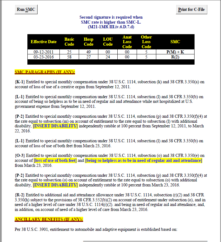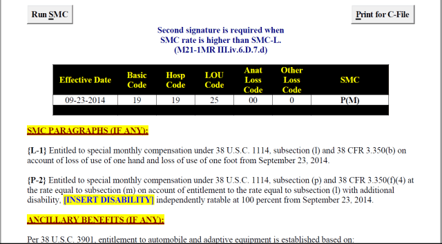 I look forward to you folks joining us and learning how to kick VA ass and take names. As promised to Jerrel, here are a few screenshots of what the VA SMC Calculator looks like on VBMS. First, the view of VBMS showing an SMC calculator entry:
