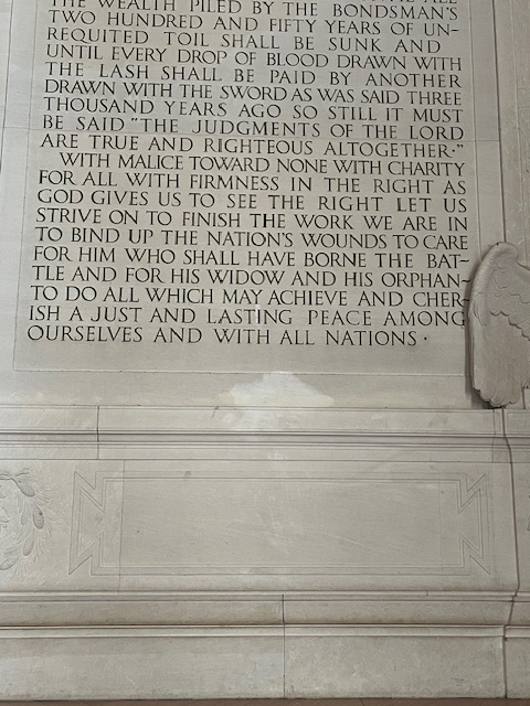 From there we hiked over to the Lincoln Memorial and wrecked Deb’s feet some more. I haven’t been in there since I was a Cub Sprout back in 1959 on a field trip with Den 4. It brings back lots of memories. I was born and raised in DC, 7 Corners and Annandale. Seems Dad kept drawing the Short straw and getting assigned to Fort Five Sides again and again.