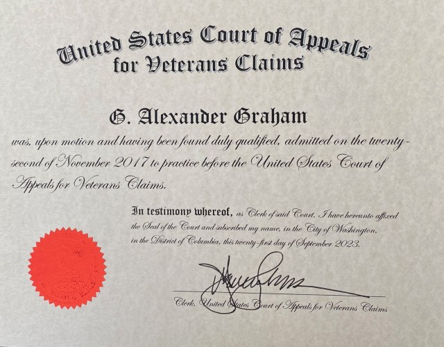 VA accredited to practice at the VBA, BVA; Admitted to the CAVC Bar